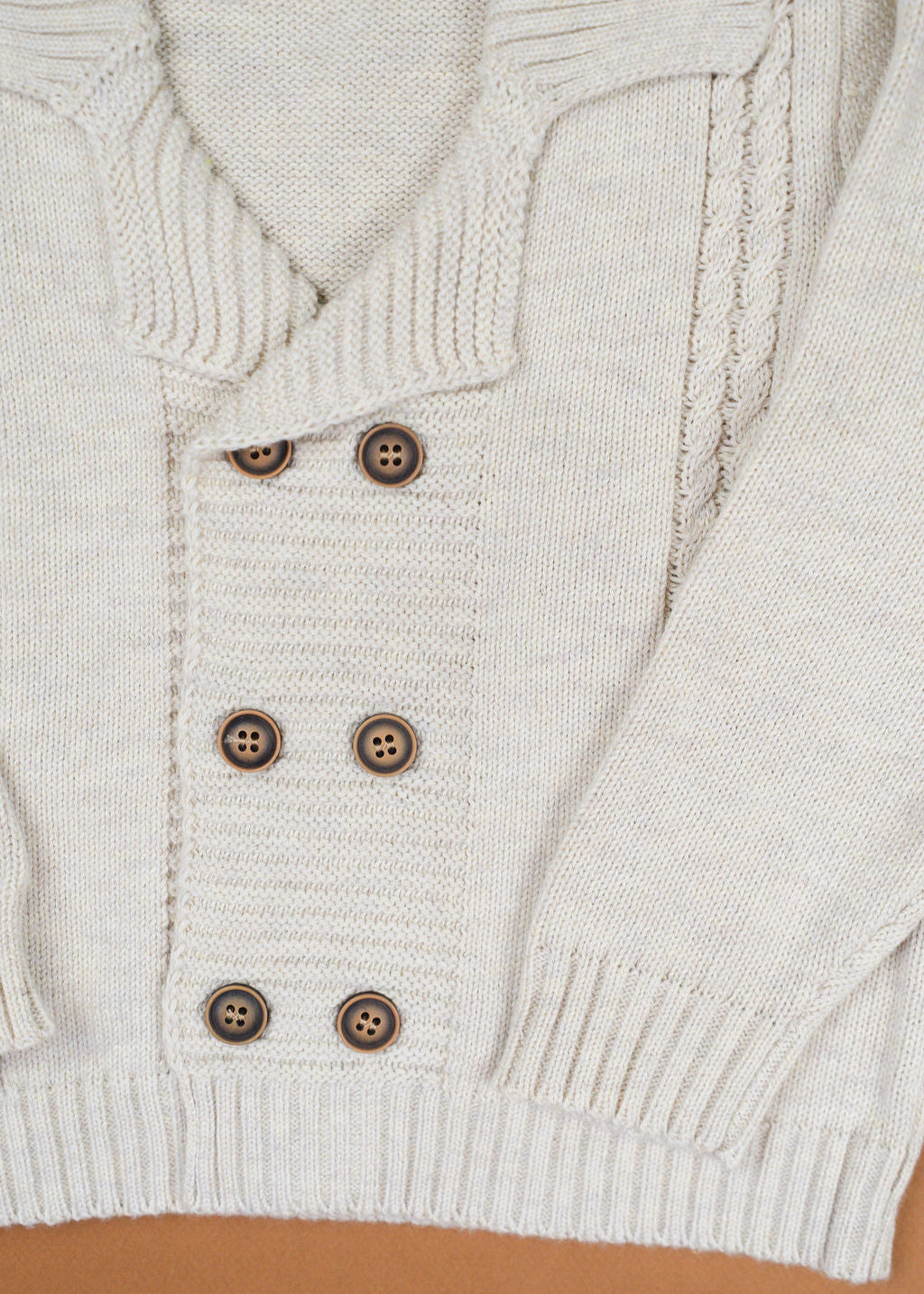 Keep your little guy cozy and stylish with this timeless cotton cardigan. Made from breathable cotton, it’s gentle on sensitive skin while providing just the right amount of warmth for cooler days. The chunky knit texture and double-breasted button front give it a classic, handcrafted look that pairs effortlessly with both dressy and casual outfits.